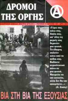 From his years as a high school student he was socially active and would later join the anarchist group MAVRO AGATHI (Black Thorn), who issued the DROMI TIS ORGIS (Streets of Rage) zine/pamphlet/serial. He was active and participated in marches, rallies, social conflicts, demonstrations, flyposting, discussions and social events.